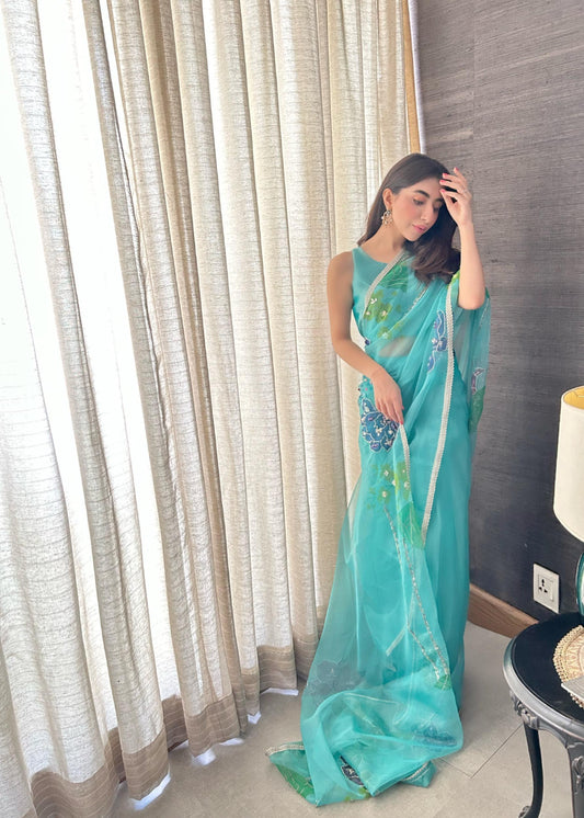 Blue Peony Saree